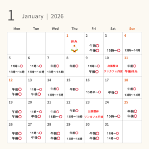 神戸三田 人と犬の整体屋さん『サクララン』2026年1月の営業日です。